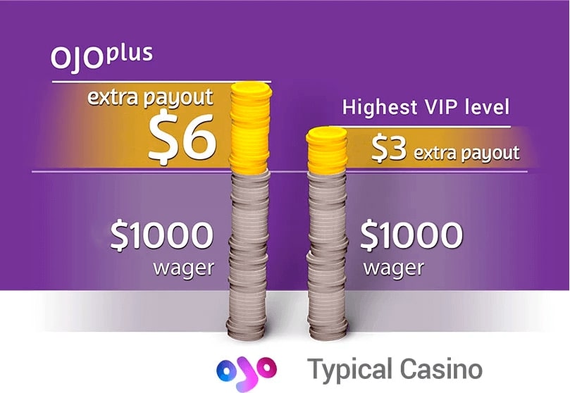 *Please note that we are solely comparing OJOplus money to cash that can be redeemed on other casinos through accumulating VIP points awarded on wagers.
