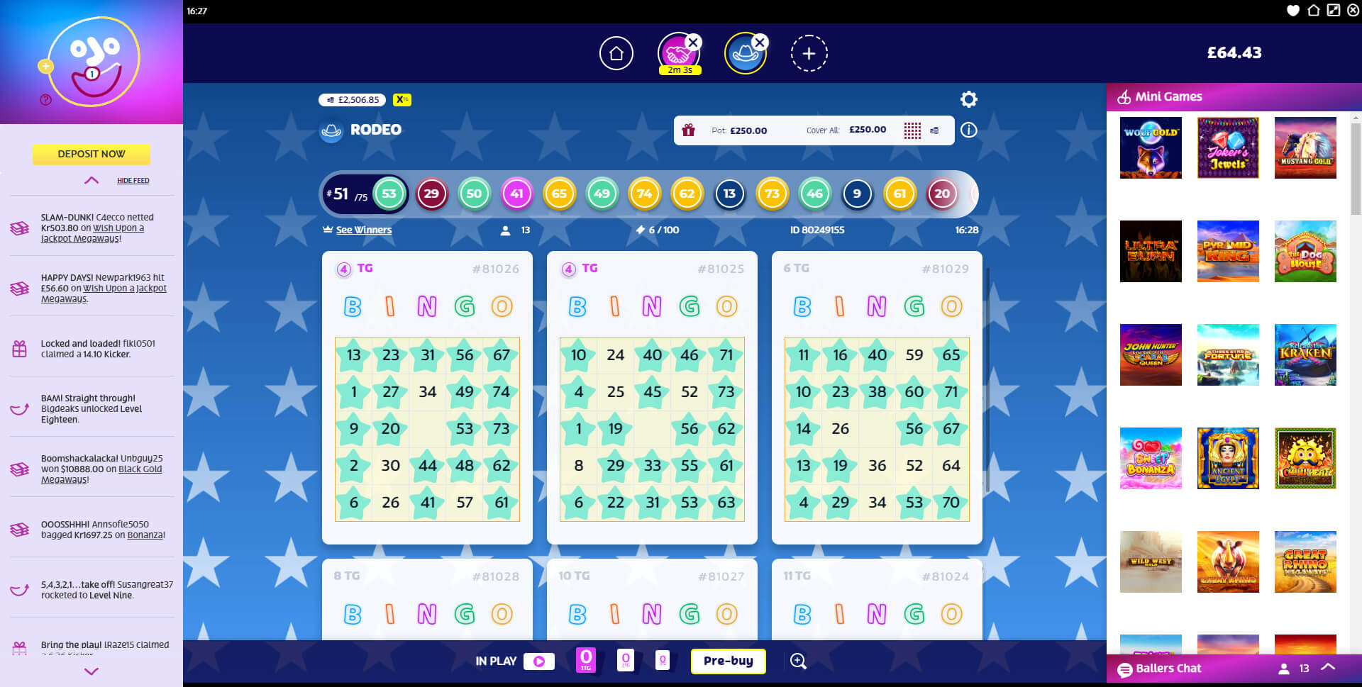 The 75 ball version of bingo is big business in the US where it’s the most popular game. Completing patterns is the name of the game in our Rodeo Room, where you race other players to win the entire prize pot. *edge of the seat!*