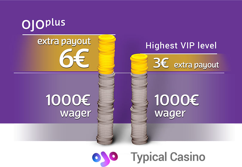 *Please note that we are solely comparing OJOplus money to cash that can be redeemed on other casinos through accumulating VIP points awarded on wagers.
