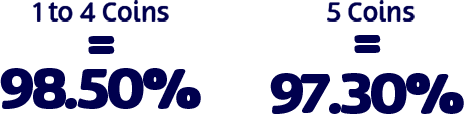 Playing more coins doesn’t mean you need to bet more money. If you play 1 coin at 50p per coin, or 5 coins at 10p per coin, the total bet is the same but with the 5-coin bet, your house edge would be halved!