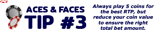 As with our other video poker games like Deuces Wild, the Aces & Faces RTP changes based on how many coins you play.