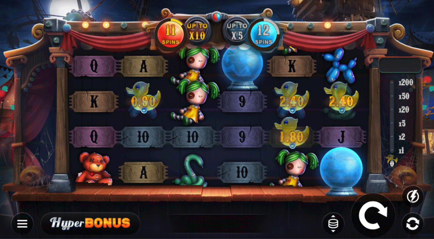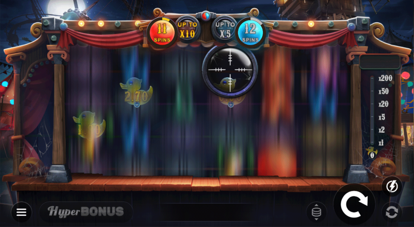 Välkommen på karneval! Månen lyser över nöjesfältet och bland kristallkulor och läskiga dockor är ditt mål att pricka ankor med gevär. Ducks Till Dawn är spännande underhållning med mystiska wildsymboler, HyperBonus, free spins med multiplikatorer och speciella siktsymboler!