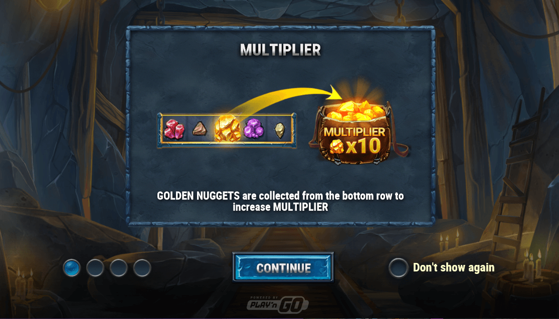 Du ser det aktuella multiplikatorvärdet till höger om själva spelplanen. Samlar du tillräckligt många guldklimpar kan det växa ända upp till x10! I grundläget återställs multiplikatorn mellan varje spelrunda. (Detta gäller dock inte under Miner Donkey Trouble free spins!)