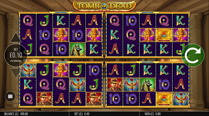 Japp, fyrdubbelt är alldeles korrekt. I Tomb of Dead casinospel spelar du faktiskt på hela fyra olika spelplaner samtidigt! Varje spelplan består i sin tur av 5 hjul, 3 rader och 10 vinstrader. Sammanlagt finns alltså 40 vinstrader som du ska matcha symboler längs. Kombinationerna ska börja från vänster.