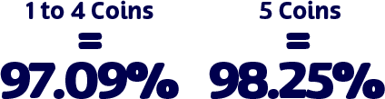 You get the highest RTP from this game when you play at max. The theoretical RTP of the game is 98.25% for 5 coins which is phenomenal! It simply means you can get up to $98.25 for very $100 you wager. For 1-4 coins, it’s 97.09%.
