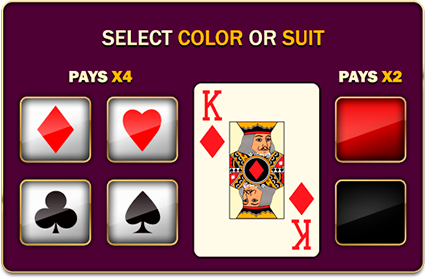Every time you win, a mind-boggling opportunity to double or quadruple your winnings will show up. It’s the classic gamble feature where you choose suit for 4x payout or a color for a 2x payout.