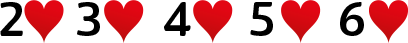 The Straight Flush is another powerful hand, consisting of 5 consecutive cards from Hearts. Straight is a similar hand but the 5 cards are not from the same suit. Other derived hands from these two would be four to Straight, Three to Straight Flush, Four to Straight Flush.